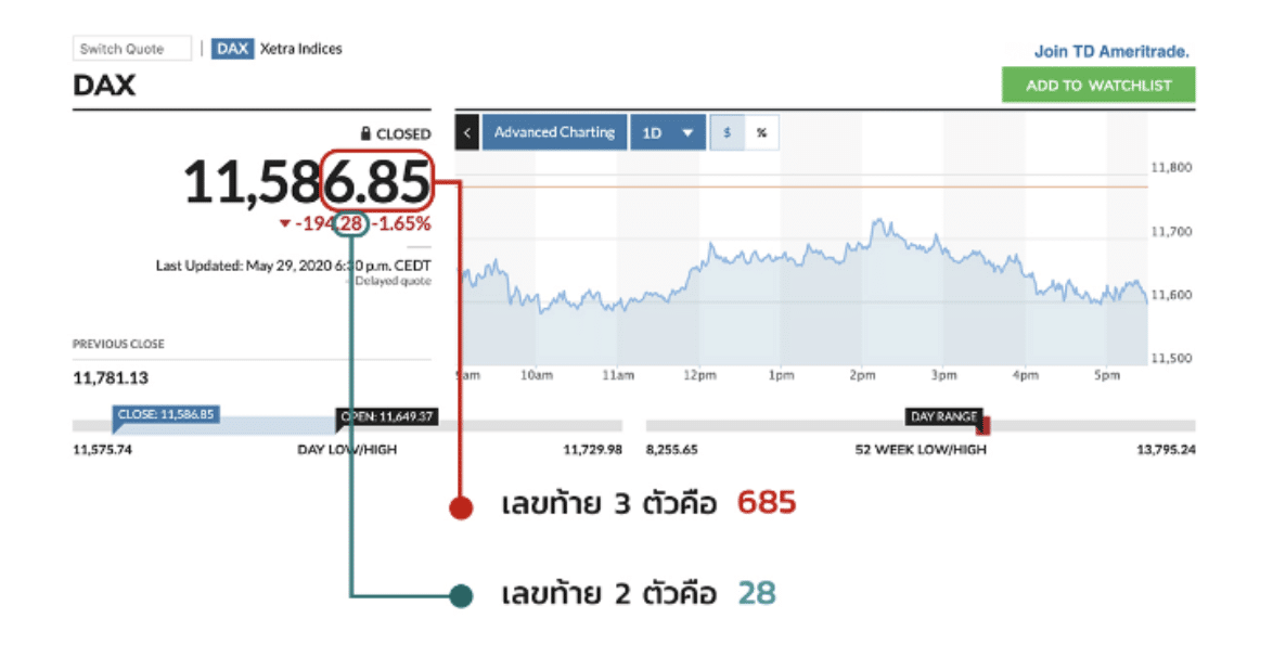 หวยหุ้นเยอรมันจะออกในทุกวัน ตั้งแต่วันจันทร์ถึงศุกร์ โดยใช้ผลการปิดตลาดของหุ้น DAX เพื่อออกผลรางวัลเลข 3 ตัวบน และใช้เลขทศนิยมหลังจุดในค่า Change เพื่อออกผลรางวัลเลข 2 ตัวล่าง นั่นคือวิธีการออกผลรางวัล สามารถดูภาพประกอบด้านล่างเพื่อให้เข้าใจง่ายขึ้น