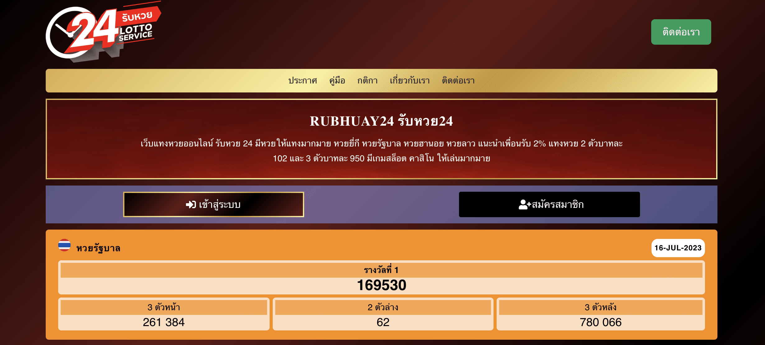 วิธีการสมัครเว็บ รับหวย 24 เพียงแค่เข้ามาที่หน้าแรก rubhuay24.bet หลังจากนั้นให้คลิ๊กที่ปุ่ม สมัครสมาชิก